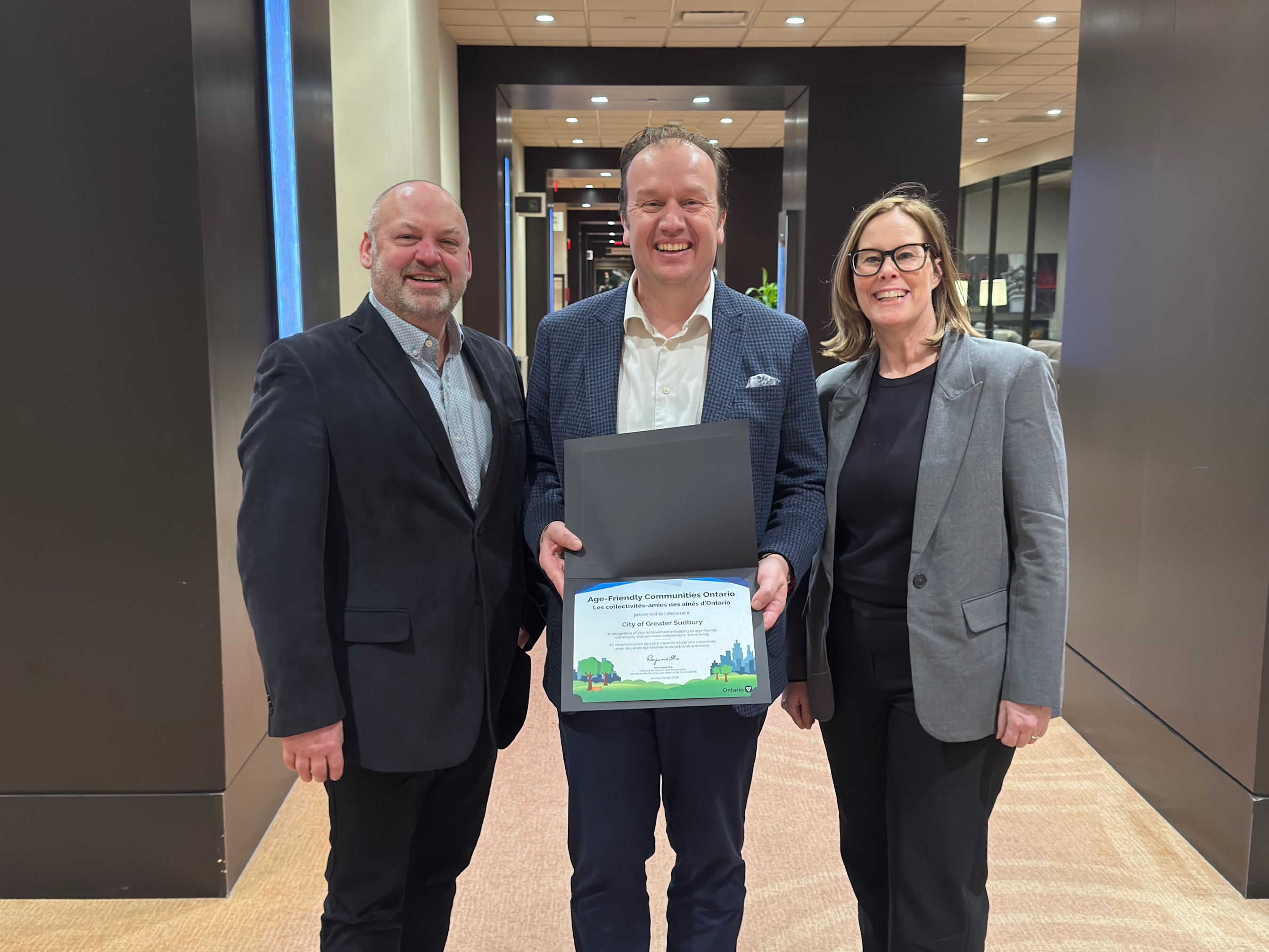 The recognition was received during the Ontario Age-Friendly Community Recognition Ceremony, which celebrates the work of municipalities that make spaces and services more accessible for people of all ages and stages of life, and all abilities. It also acknowledges communities that create opportunities for older adults to live active, safe and enjoyable lives while supporting their health and maintaining their connection to their community. The City of Greater Sudbury is among a small group of Ontario municipalities that met these criteria in 2025.