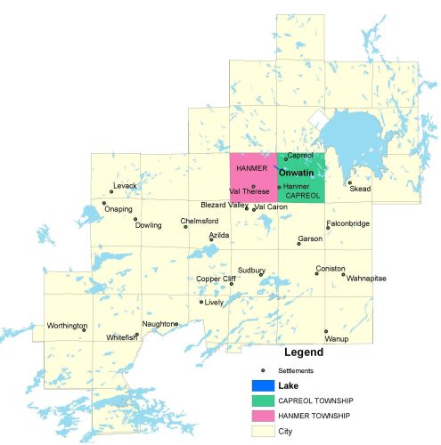 Located near the town of Hanmer, north of Sudbury, in Hanmer and Capreol townships.